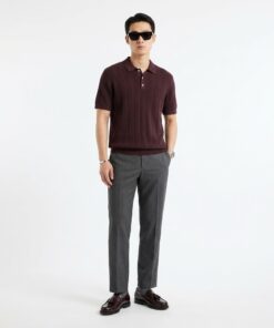 MS003 – Polo Len Burgundy & Quần tây Charcoal Straight-fit